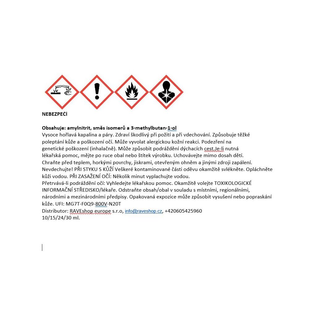 - výrobek obsahuje 10 ml: Amyl nitrit – směs izomerů
