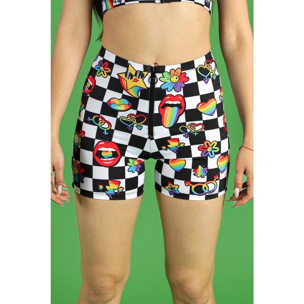 Pride Stickerbomb Front Zip Biker Shorts