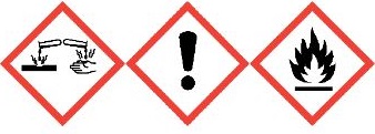 Vysoce hořlavá kapalina a páry. Zdraví škodlivý při požití a při vdechování. Způsobuje těžké poleptání kůže a poškození očí. Může způsobit podráždění dýchacích cest. Odstraňte obsah/obal v souladu s místními, regionálními, národními a mezinárodními předpisy. Opakovaná expozice může způsobit vysušení nebo popraskání kůže.