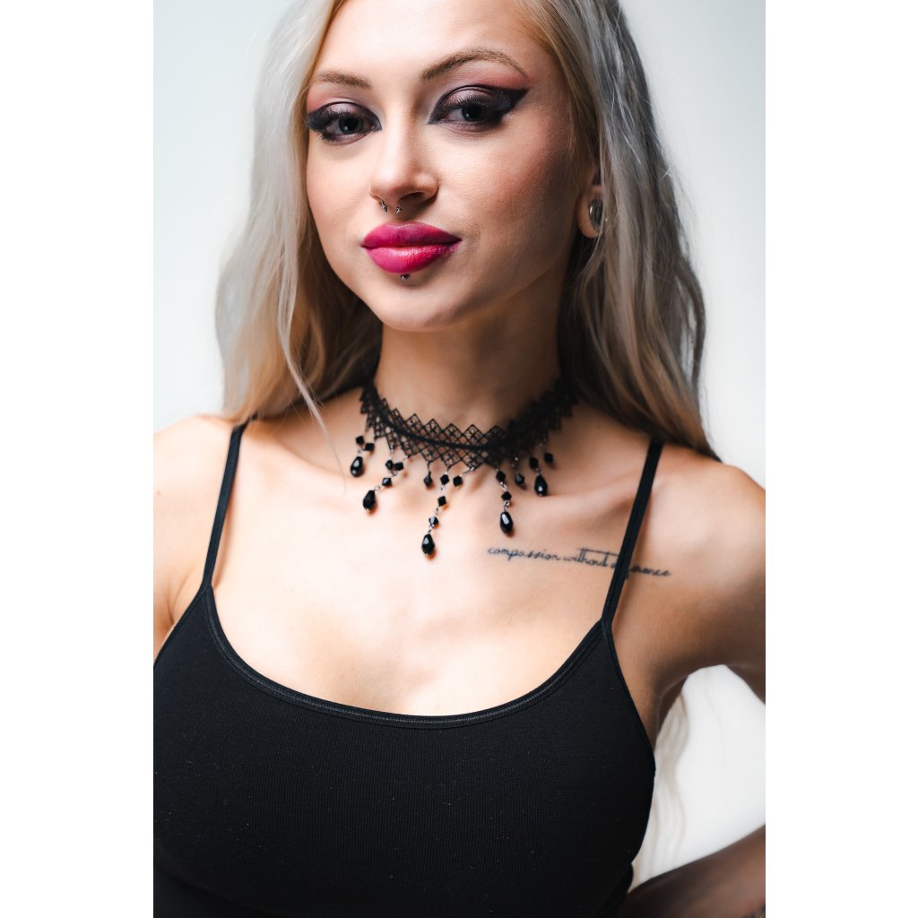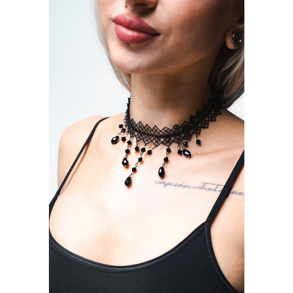 Čierny choker náhrdelník s drahokami