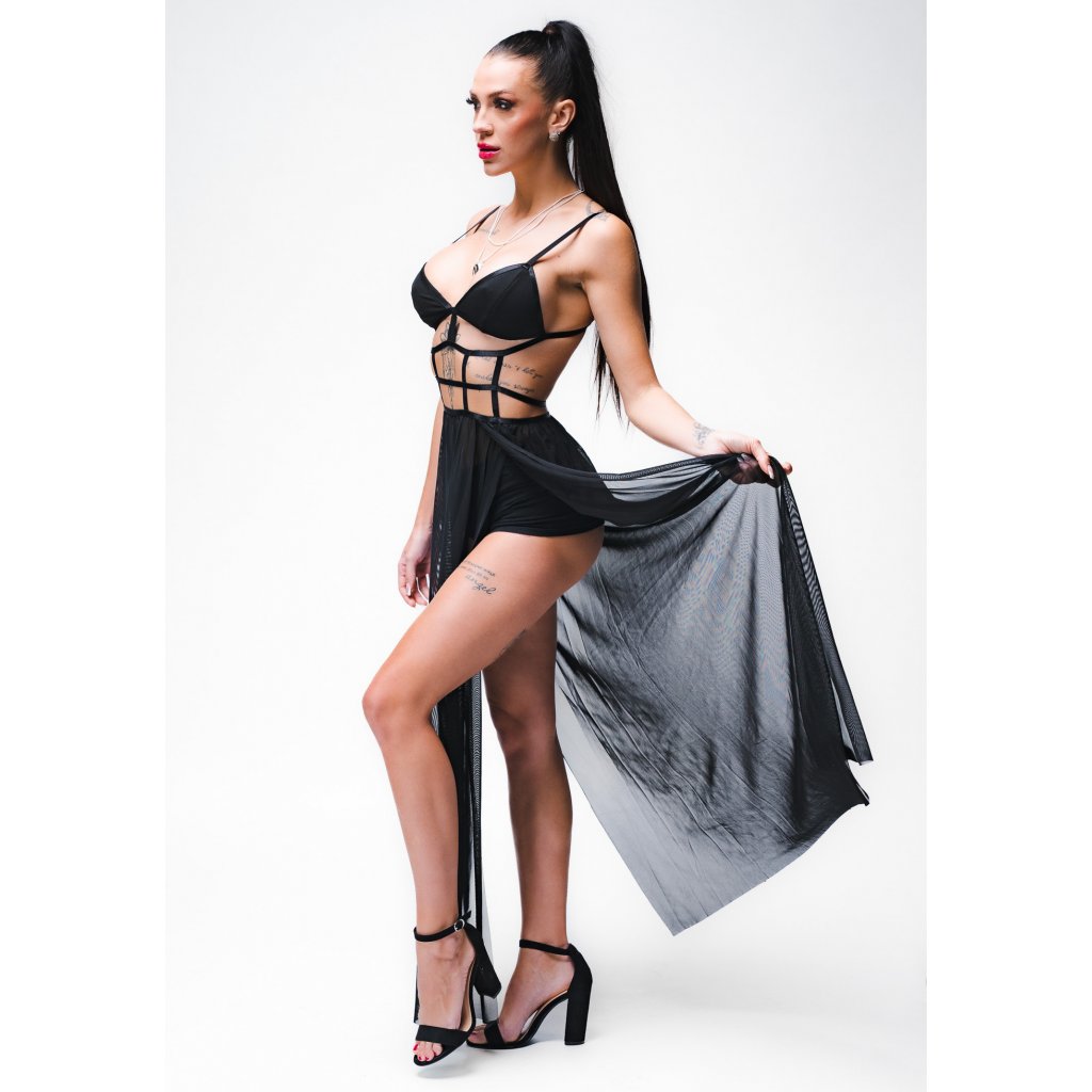 Modelka je vysoká 170 cm a má na sebe veľkosť XS.