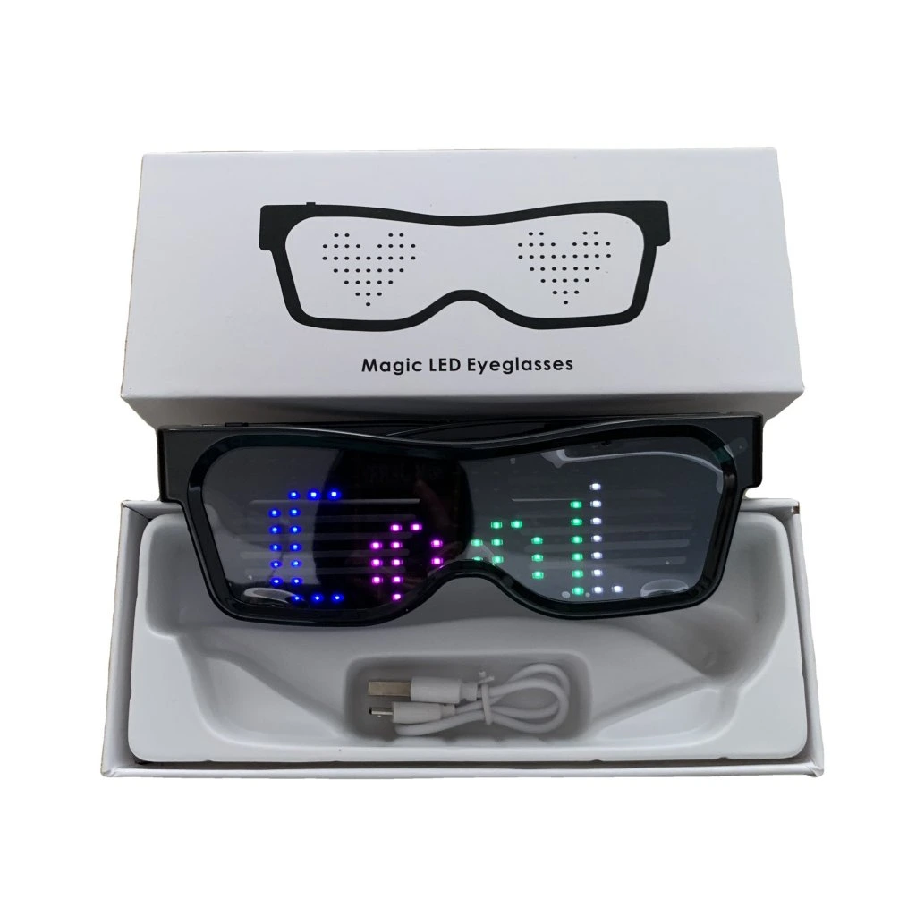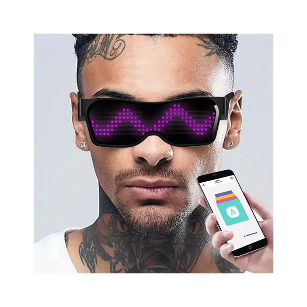 Štýlové svietiace okuliare ovládané mobilnou aplikáciou sú zaujímavým doplnkom na párty. Pomocou aplikácie môžete zvoliť preddefinovanú šablónu, či si sám napísať akýkoľvek text. Skvelý doplnok na párty, festival, alebo akúkoľvek udalosť.