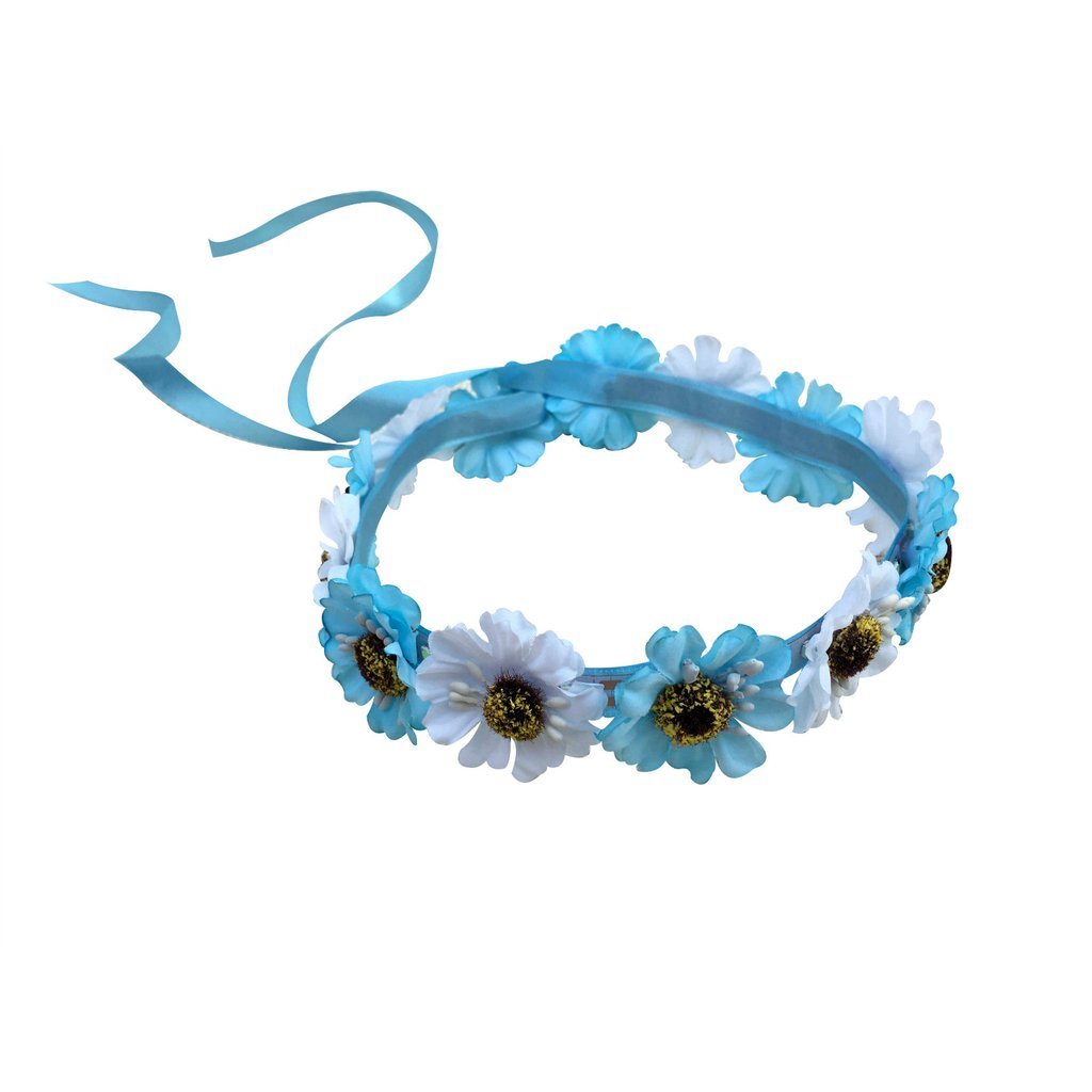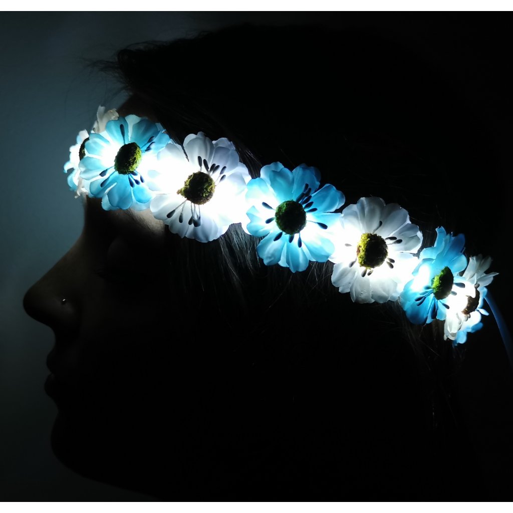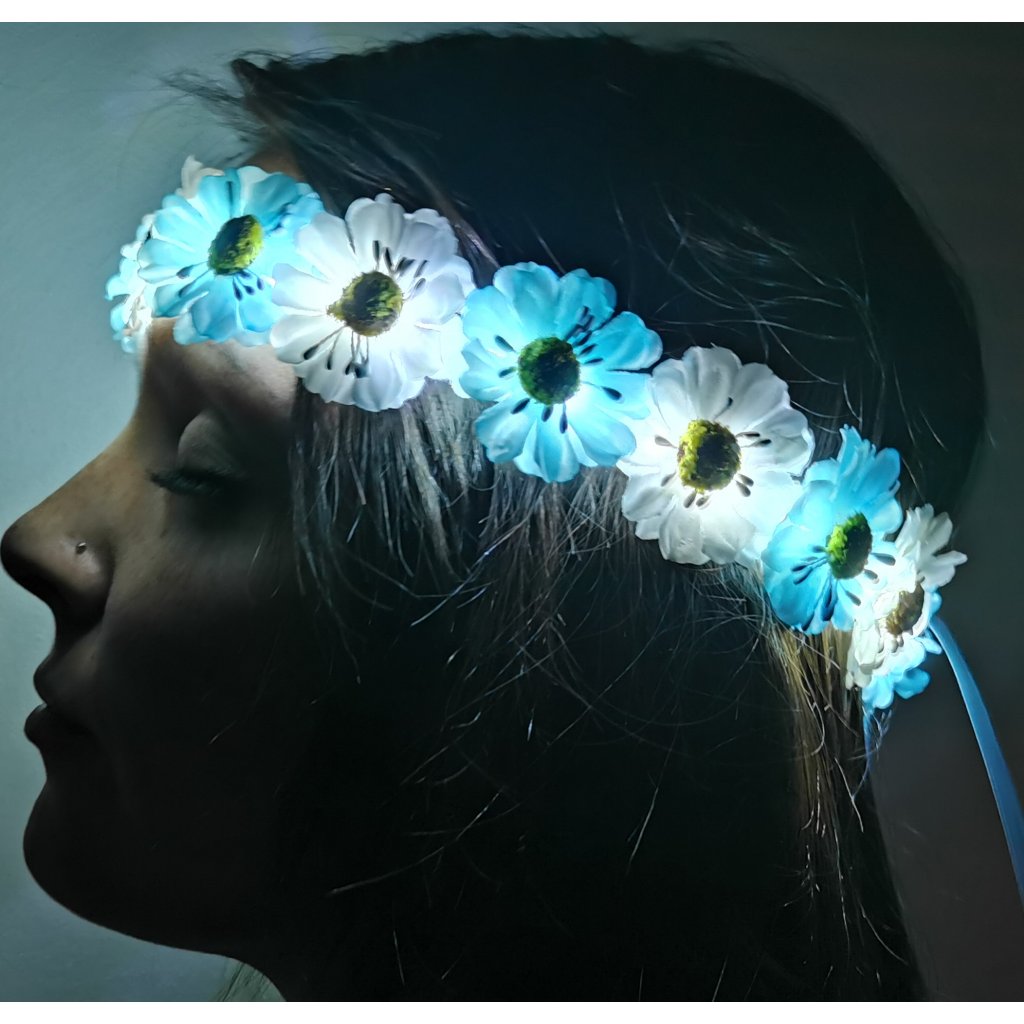 Svietiaca kvetinová čelenka do vlasov - modrobiela
