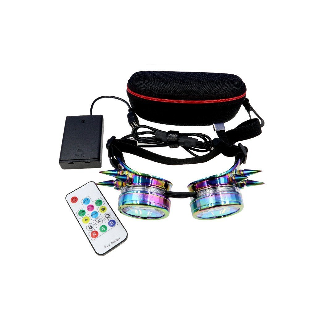 Kaleidoskopické LED svítící STEAMPUNK brýle, dodávané společně s dálkovým ovládáním, se kterým můžeš jednoduše přepínat barvy. Volit můžeš ze třech barev (červená, zelená, modrá) a světelných kombinací - svícení, blikání nebo postupné rozsvicování LED diod.