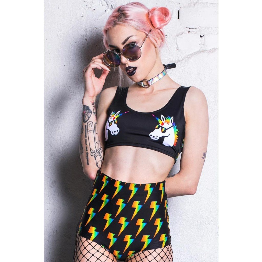 Víš, že život není jen duha a jednorožci. Takže když je potřebuješ, můžeš si prostě obléknout tento oslnivý crop top s jednorožcem! Dostane tě do extatické nálady. Vždycky buď sama sebou, pokud nemůžeš být jednorožec!